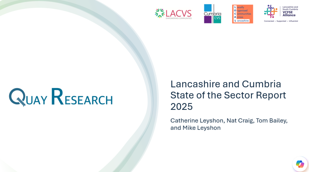 Background: The State of the Sector Survey was created to understand the work the Voluntary, Community, Faith & Social Enterprise (VCFSE) sector does and to celebrate the positive contributions it is making here in Lancashire.