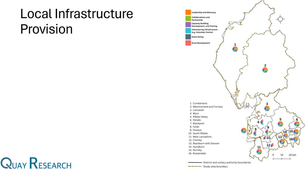 Local Infrastructure Provision in each of the geographical areas, including volunteering infrastructure, grant giving and sector capacity building, development & training