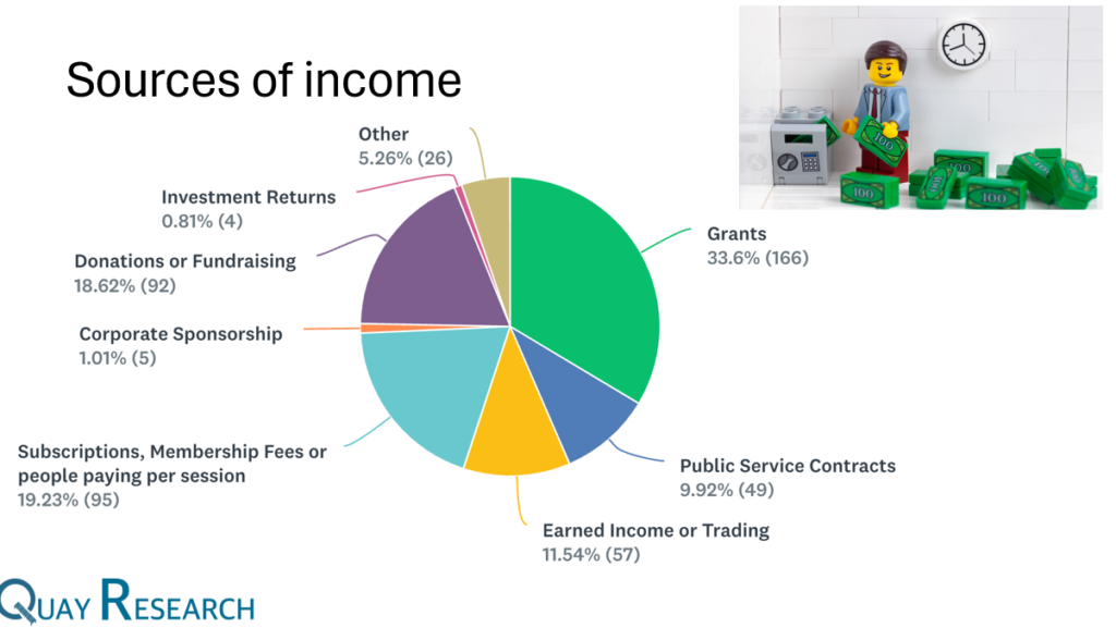 Sources of Income for the VCFSE sector where more than 50% of income come from grants and donation/fundraising